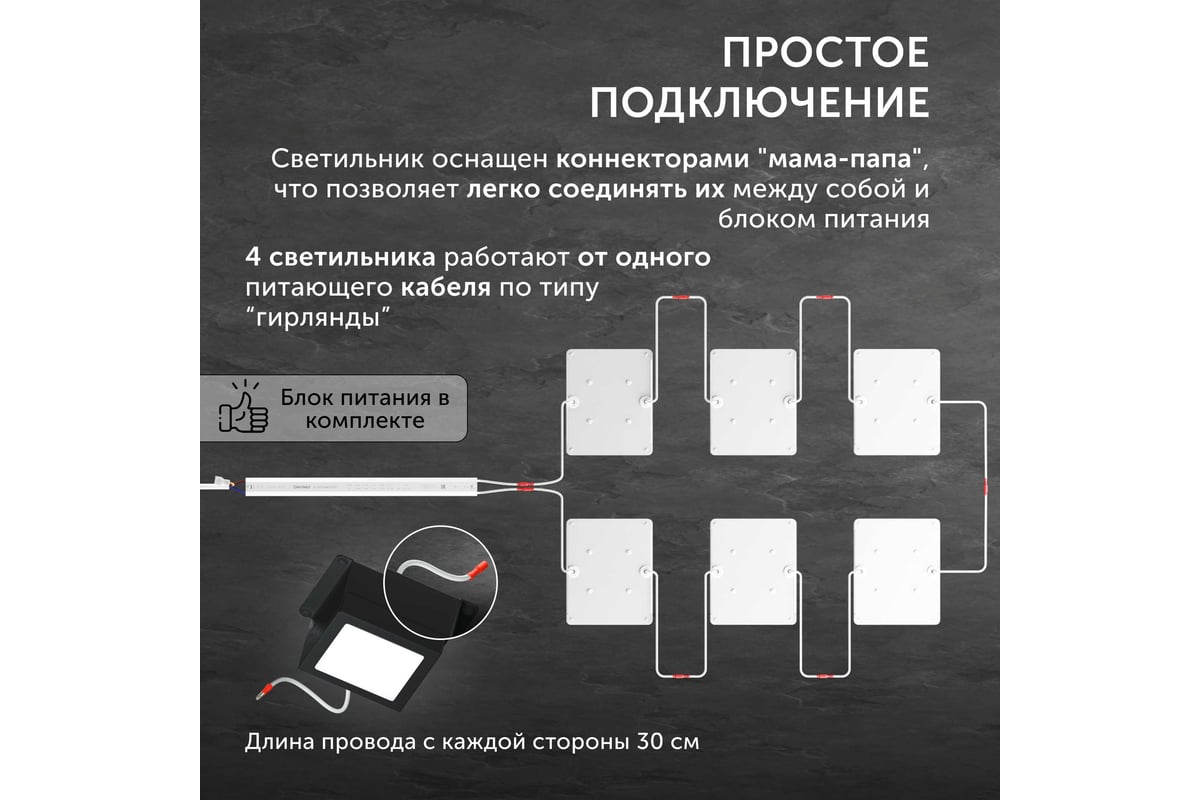 Светильник LED Geniled Griliato Tetris x4шт по 10Вт для ячейки 75x75/10 40Вт 5000К Опал Черный