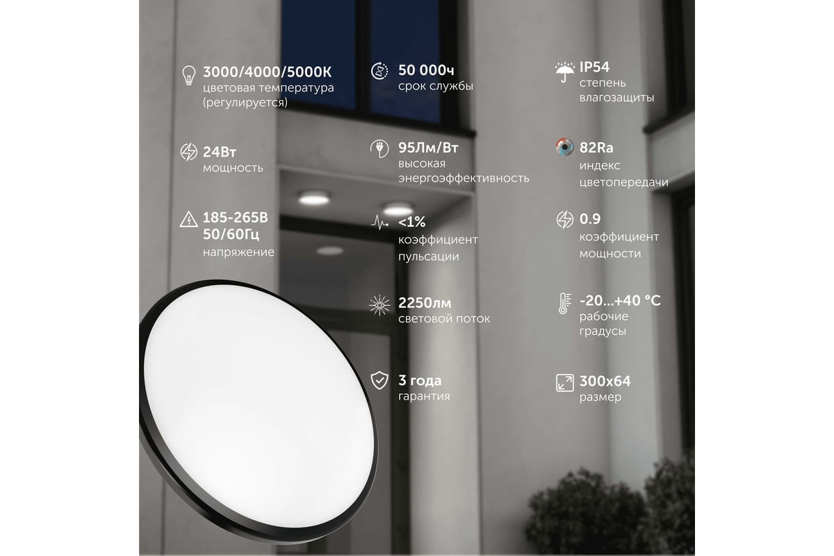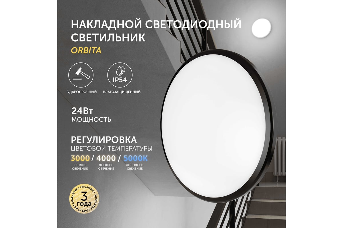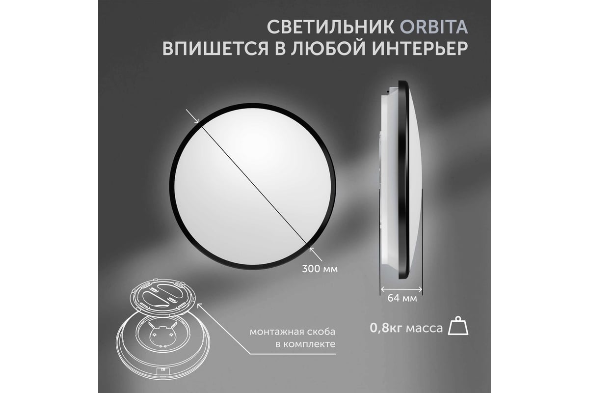 Светильник LED уличный Geniled Orbita 300x64 24Вт 3000К/4000К/5000К IP54 Черный с регулировкой цветовой температуры